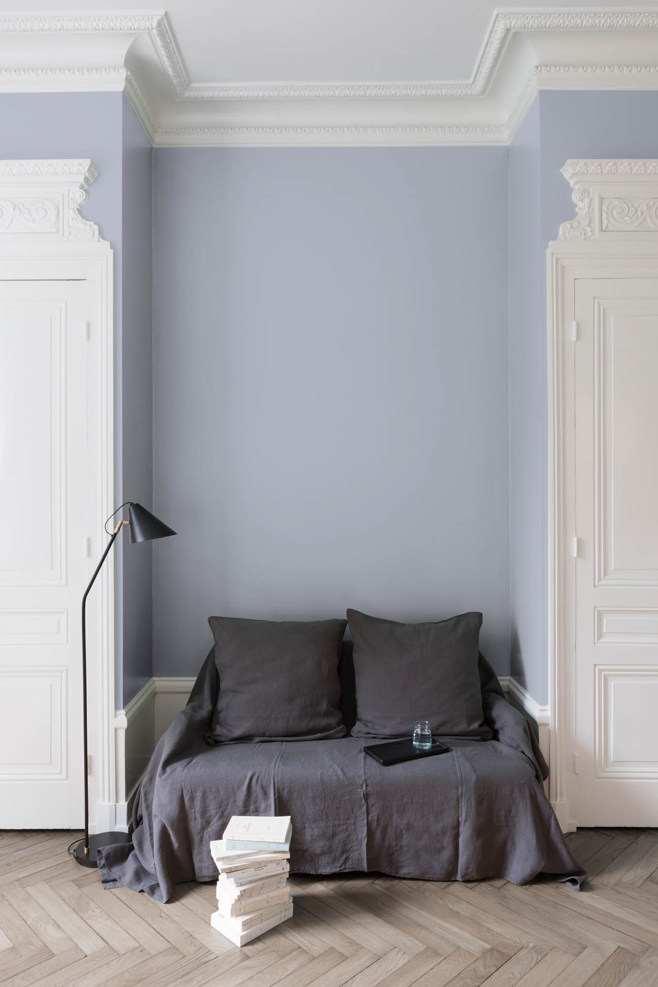Ein weicher, blasser Grauton, der ganz leicht changierend ist und je nach Lichteinfall von einem frischen Pastellblau bis zu einem weißlichen Perlgrau reicht.