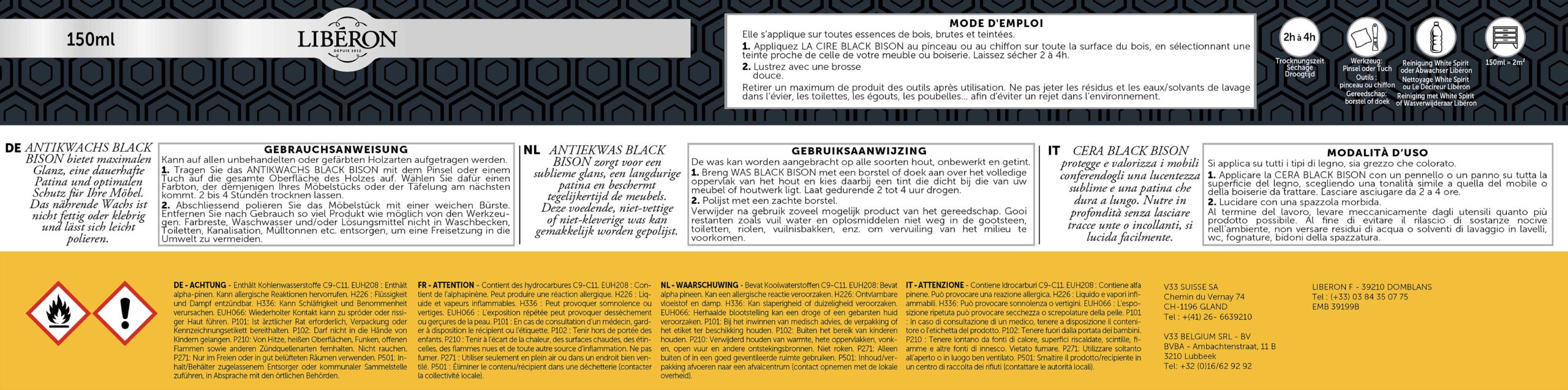 La Cire Antiquaire Black Bison est formulée à base de cire de Carnauba qui résiste mieux aux taches. La Cire d’Abeilles est un produit à l’eau qui dégage une douce odeur d’amande amère.