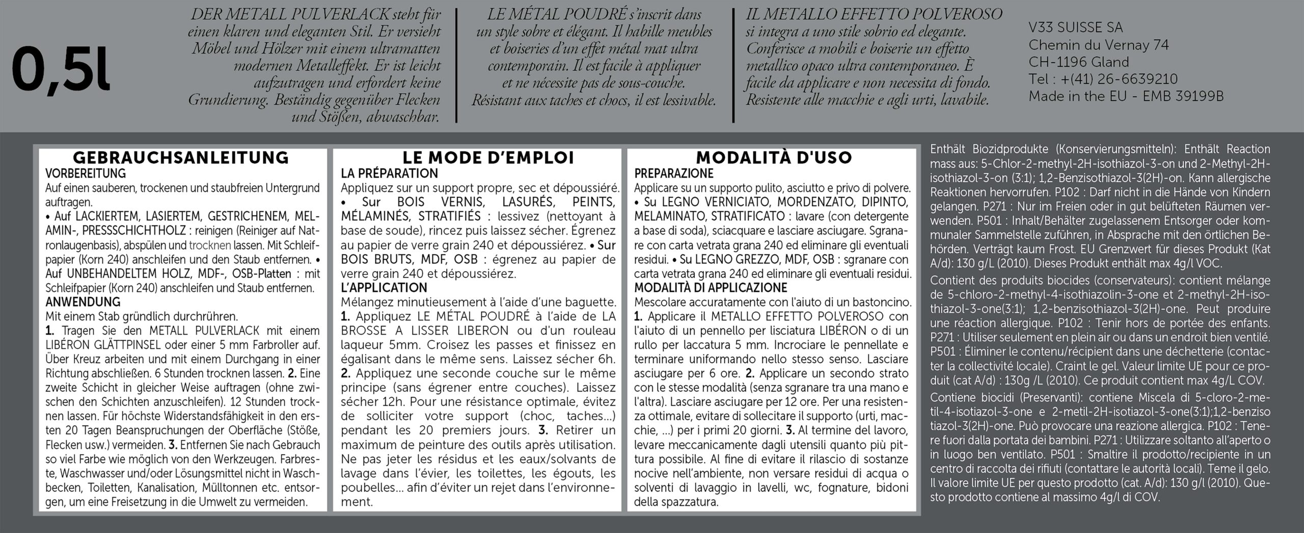 La peinture meuble bois « Le Métal Poudré » s’inscrit dans un style sobre et élégant grâce à son effet métal mat ultra contemporain.