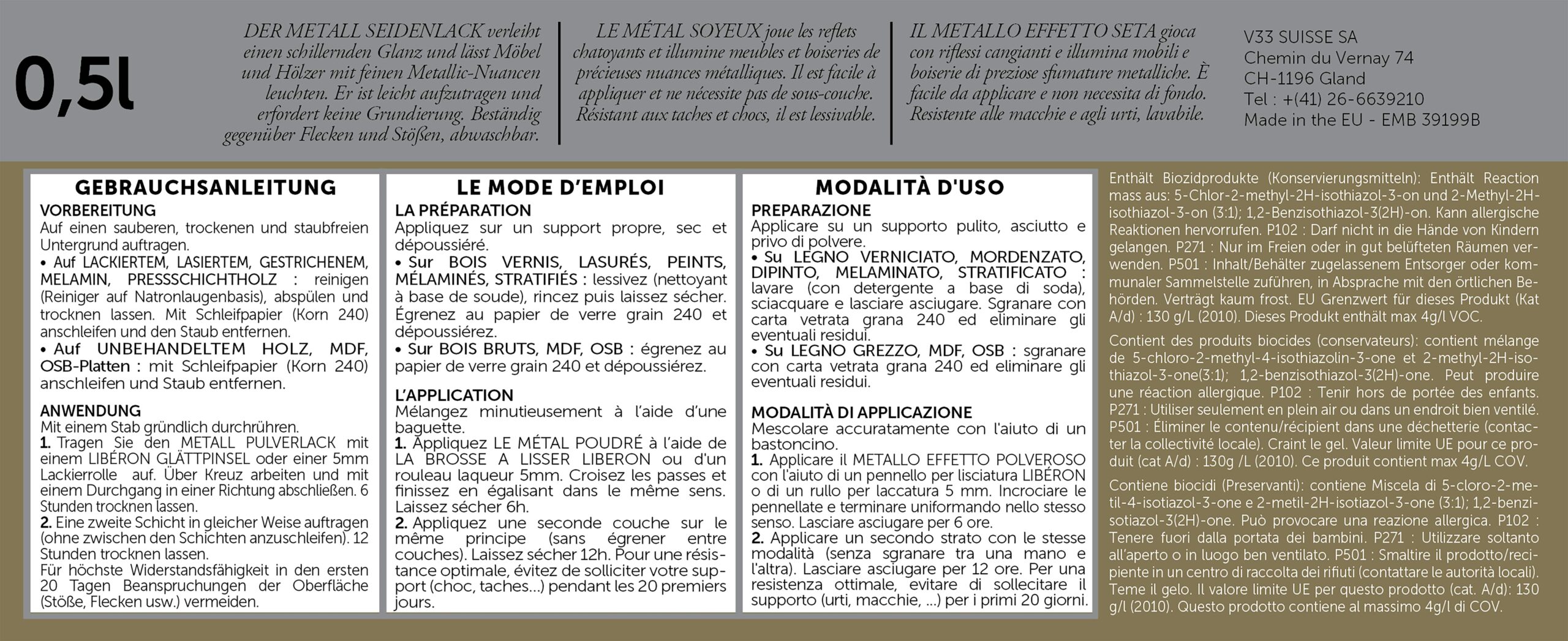 Jouez les contrastes métallisés ! Appliquez sur une partie de votre support LE MÉTAL SOYEUX et sur l’autre partie LE MÉTAL POUDRÉ de Libéron.